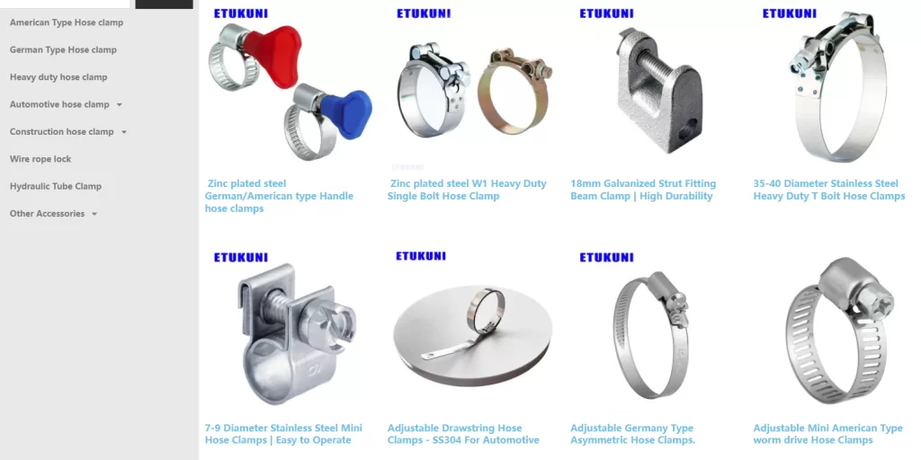Additionally, stainless steel clamps come in various types, such as double-wire, phosphor bronze, and galvanized clamps, and are essential for gas/liquid connections in industrial applications.