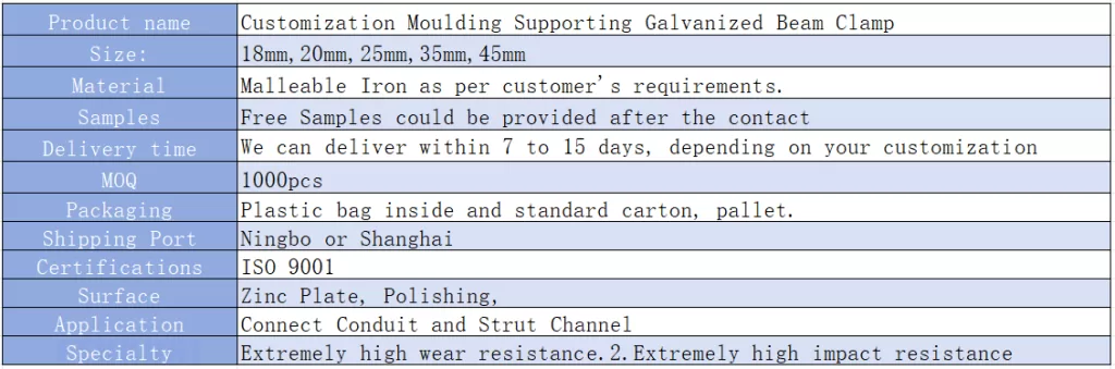 Product Description of Galvanized Strut Fitting Beam Clamp: