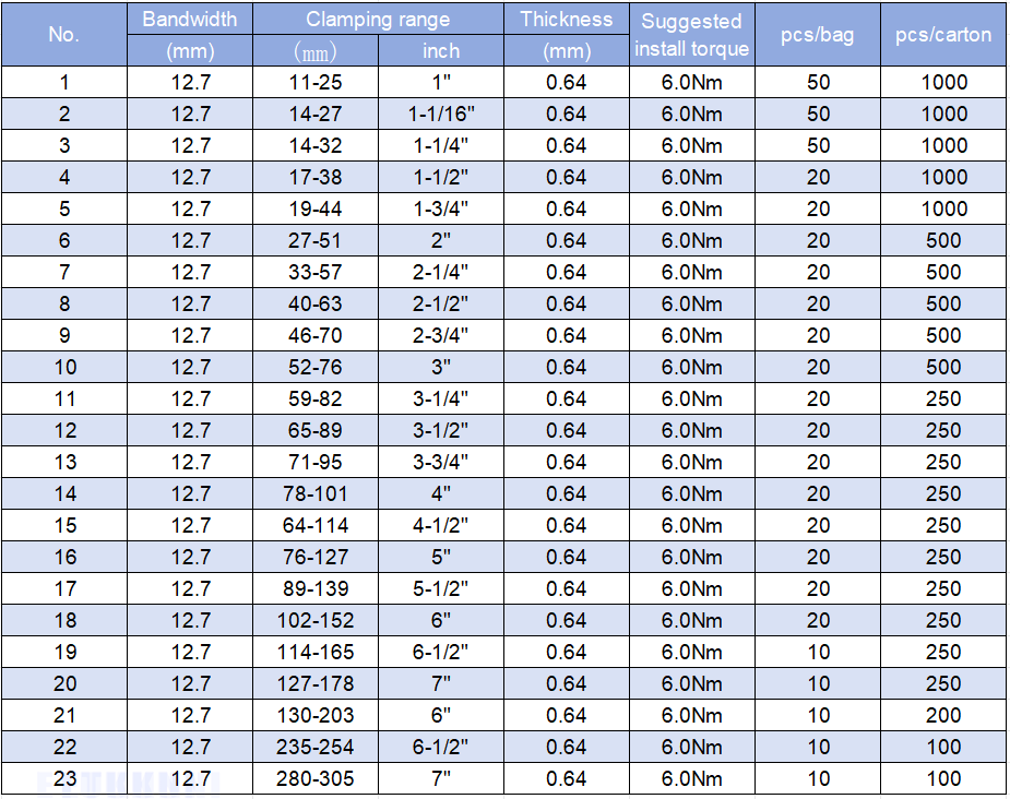 3. Through repeated testing and verification of American-type hose clamps, the perforation shape of the strap is superior to other factory products in terms of damage torque.