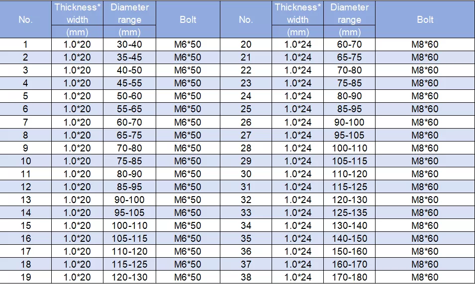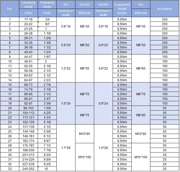 We offer a variety of hose clamps, including Single Bolt Hose Clamp and Single Bolt Hollow Hose Clamp.